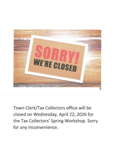 Town Clerk/Tax Collector’s Office Closed 4/22/26